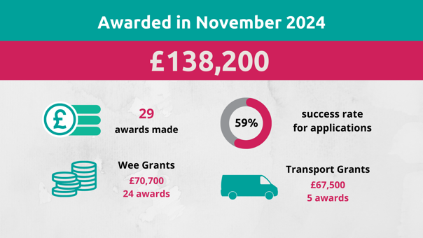£138,200 was awarded to 29 organisations in November 2024, with a success rate of 59%. This is the first awards made under the new structure of Our Funds.