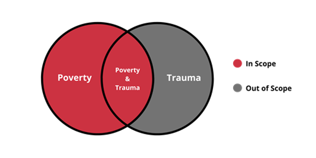 As we know that not everyone who experiences poverty will also experience trauma, we will fund work which either: