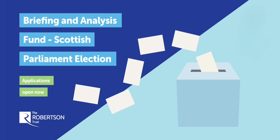 Due to recent changes at the abrdn Financial Fairness Trust, applications for the ‘Briefing and Analysis Fund – Scottish Parliament Elections’ should now be sent to programmes@therobertsontrust.org.uk before the deadline (noon on Wednesday 9th July). Any questions about the Fund or your application before the deadline should also be sent to this address. Please see our recent news post here for more details.