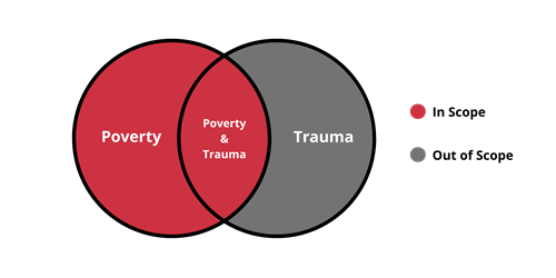 We recognise that many organisations applying for a Community Spaces Grant are likely to be focused on addressing poverty primarily, and that related forms of trauma (often arising from harmful relationship experiences as children or adults) may feature less strongly in their work. That’s ok. We will fund work that is focused solely on preventing or reducing poverty. We know, however, that often where people experience poverty, they may also experience related trauma. We are therefore also interested in funding work which seeks to address poverty and trauma together, where the experiences are interlinked.