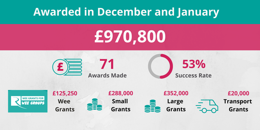 £970,800 was awarded to 71 organisations in December 2024 and January 2025, with a success rate of 53%.