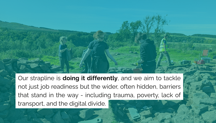 Our goal is to offer practical, person-centred support that helps young people believe in themselves, feel connected to their communities, and take meaningful steps into employment, education or training. Our strapline is doing it differently, and we aim to tackle not just job readiness but the wider, often hidden, barriers that stand in the way - including trauma, poverty, lack of transport, and the digital divide. Getting a job is often the easy part. It’s working through everything else – unpicking the knots - that takes time and care.